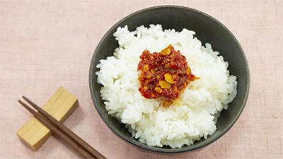 ご飯にのせると、まず豊かなにんにくの香りが広がります。口に入れると、にんにくの風味、トマトの酸味、ラー油のピリ辛さが絶妙に調和。まるで高級なトマトソースのような、コク深くまろやかな味わいです。